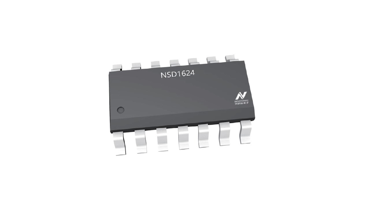 NSD1624 is a high-voltage half-bridge gate driver that can provide a maximum drive current of 4A/6A and can be used to drive various power devices such as MOSfet/IGBT. NSD1624 can be used in bus voltage systems up to 1200V. It features industry-leading ultra-low propagation delay, low static current, strong negative pressure resistance, and high DV/DT disturbance resistance.